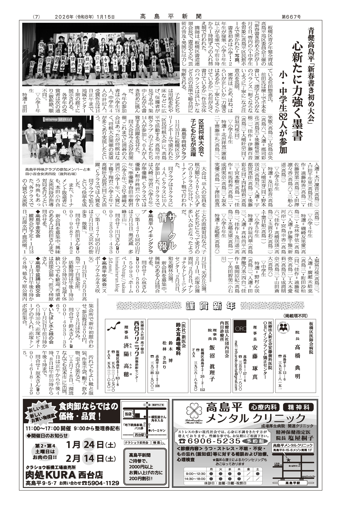 ・青健高島平「新春書き初め大会」【心新たに力強く墨書】小・中学生82人が参加